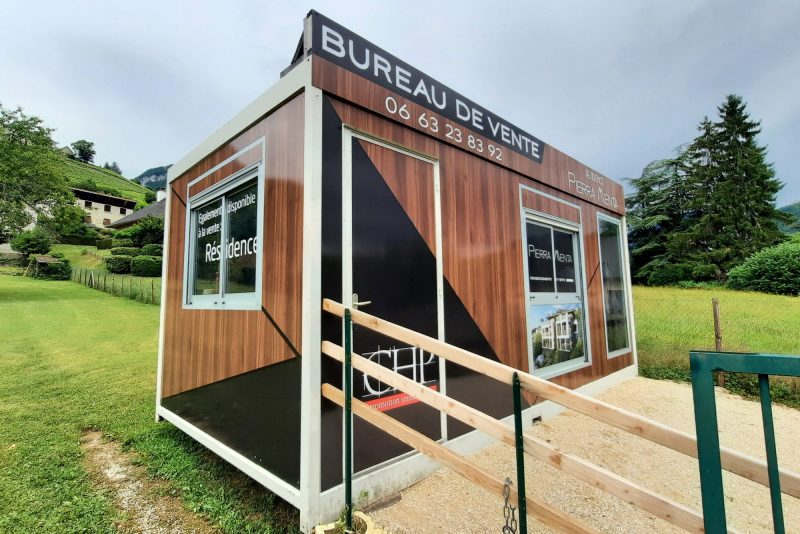 La bulle de vente (ou bureau de vente) est LE support marketing privilégié pour les professionnels de la promotion immobilière. Cette structure, le plus souvent de type bungalow, est installé temporairement à proximité du site de construction. Il s’agit de la première image visible pour vos prospects.