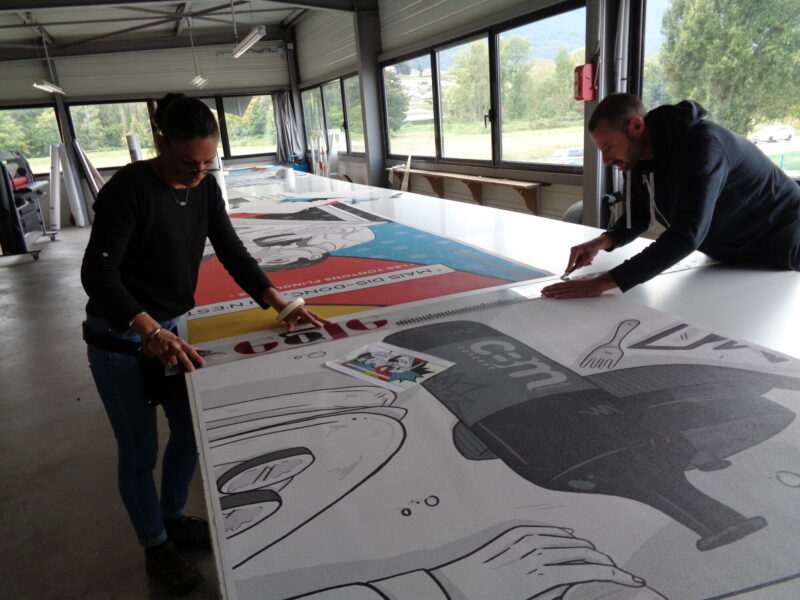 Le travail graphique finalisé, le visuel a ensuite été produit sur notre nouvelle imprimante HP Latex dont les encres sont garanties 0 émission nocive afin de préserver vos espaces de vie et notre environnement.