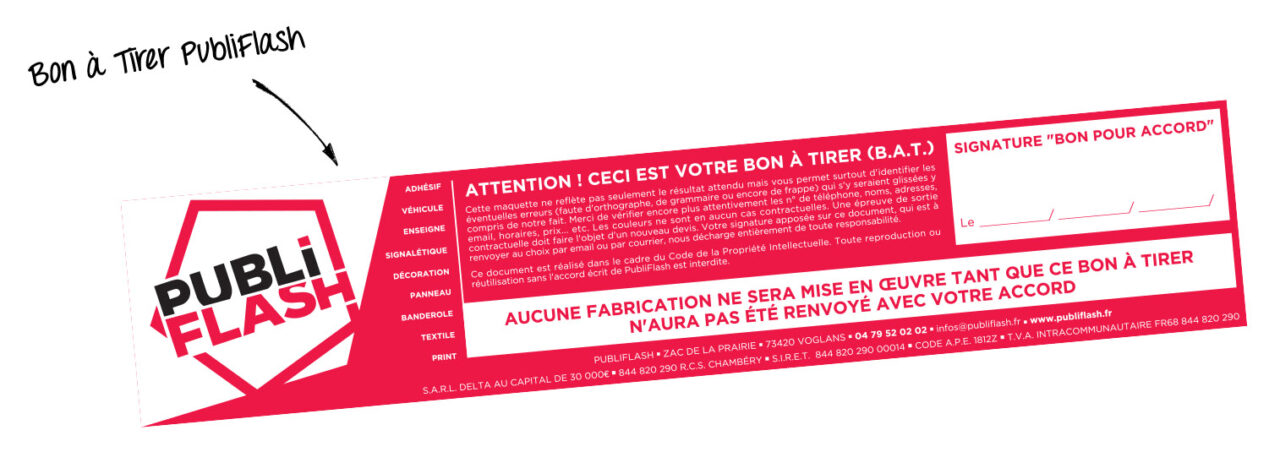 Le BAT est donc indispensable pour éviter tout malentendu possible entre le tireur (nous) et le client. Il permet également de prévenir les erreurs de mise en page etc.