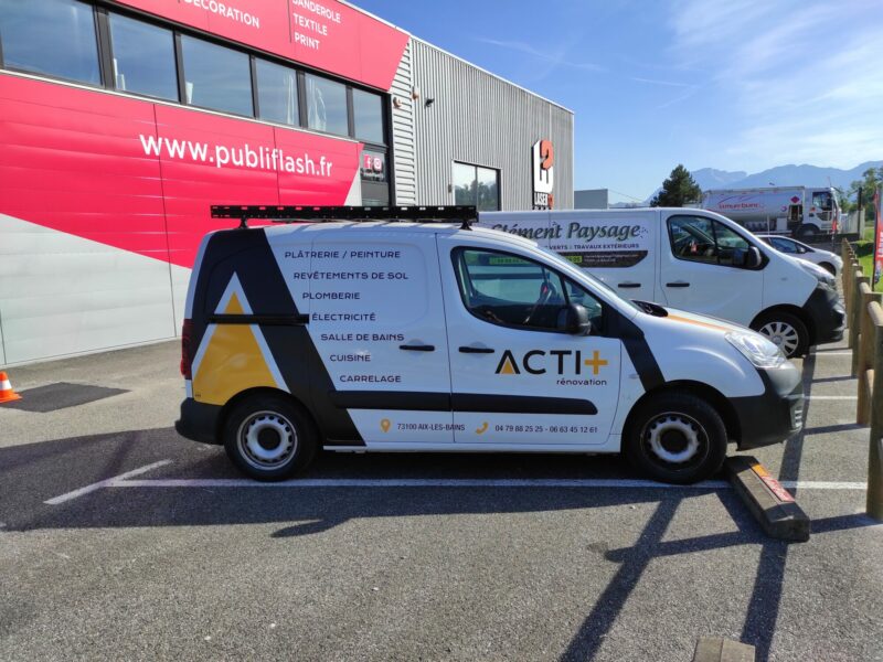 Acti+ rénovation, entreprise générale du bâtiment spécialisée dans l’agencement et la rénovation, nous a confiée la refonte de leur logo, la réalisation de cartes de visite ainsi que le covering de leurs nouveaux véhicules !
