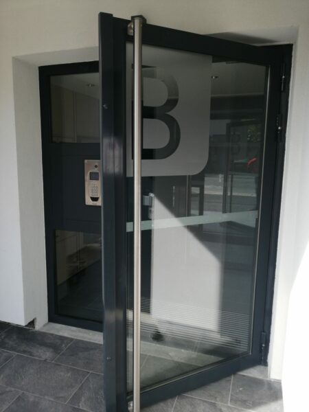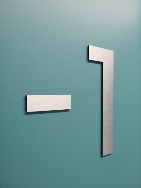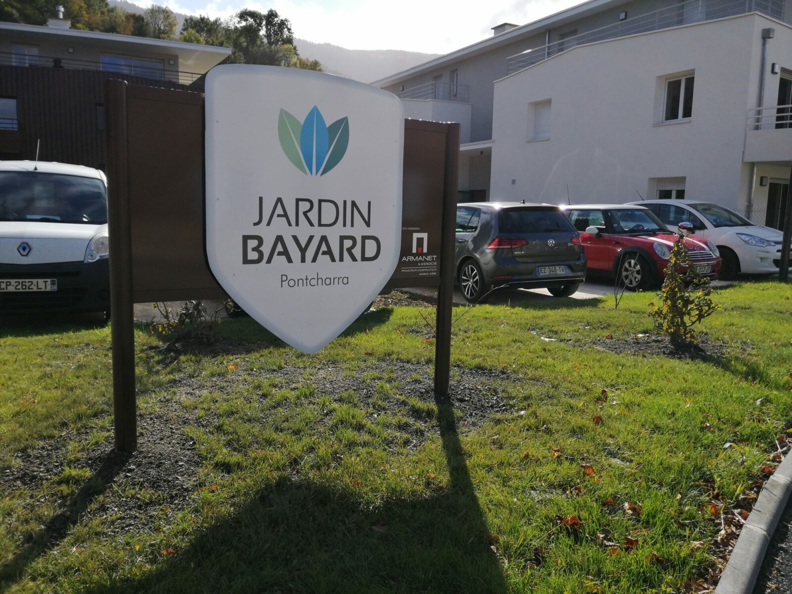 Une signalétique sur-mesure pour l’immeuble “Les Clarines” à Saint-Baldoph de notre client Armanet & Associé, promoteur immobilier. Dibond découpé à la forme, adhésif dépoli…