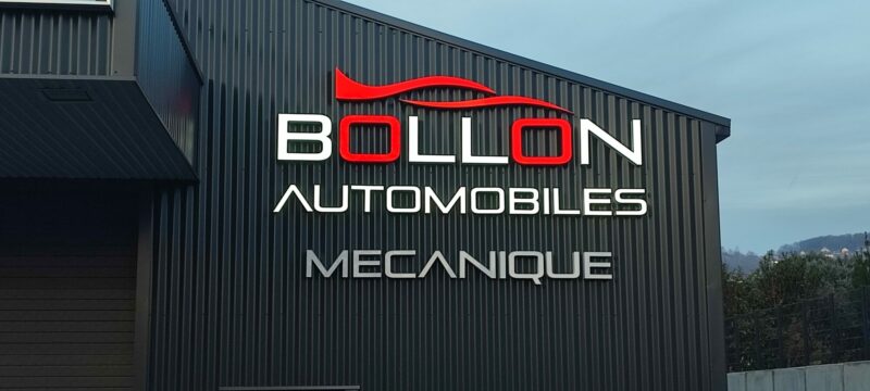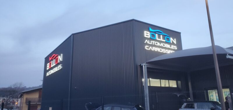 Bollon Automobile a rénové son garage et créé une extension dédiée à la carrosserie pour développer son activité à Grésy-sur-Aix. Pour accompagner cette évolution, nous avons conçu et installé trois enseignes lumineuses grand format.