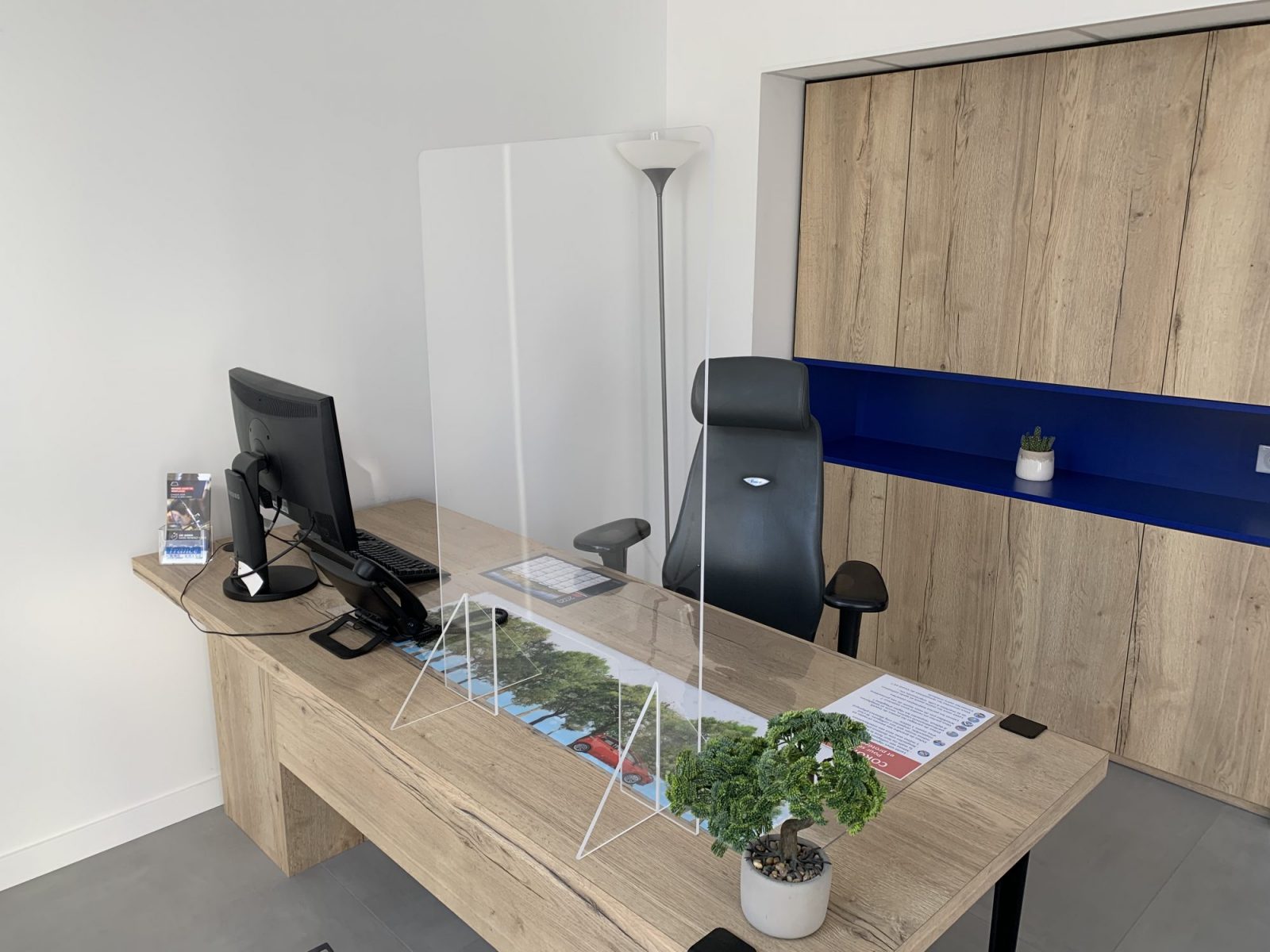 Vitrine en adhésif effet dépoli, imprimé et détouré.