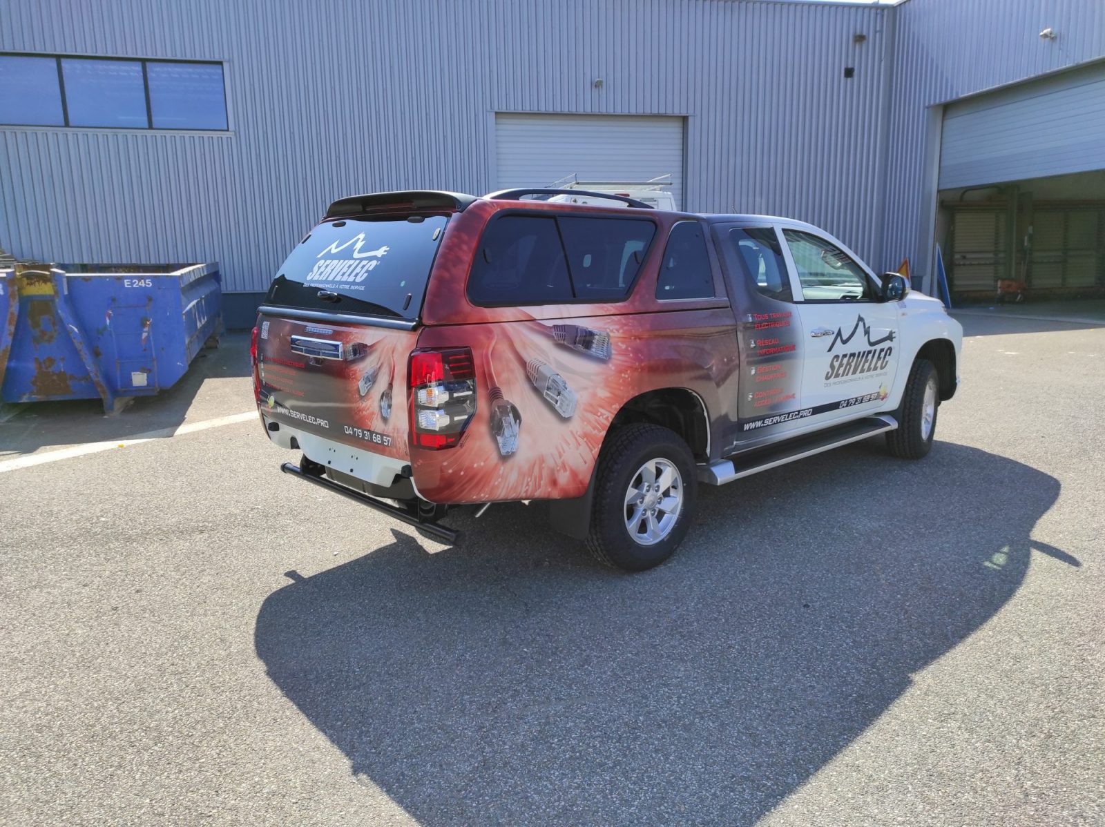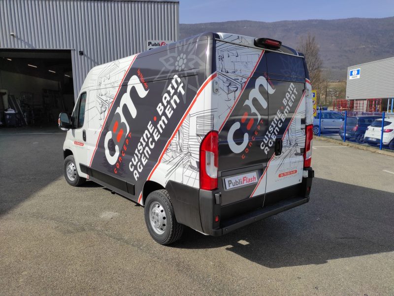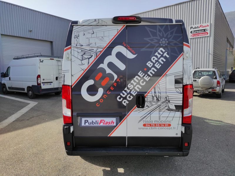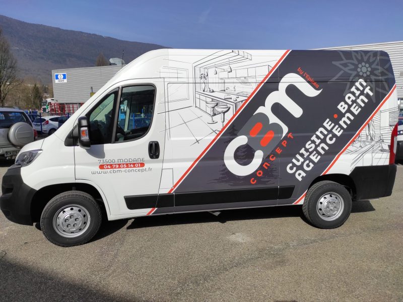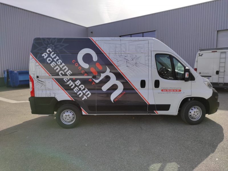 Un gros covering sur ce Boxer avec une trame de fond et le logo en gros, bien visible sans être trop tape à l’oeil.