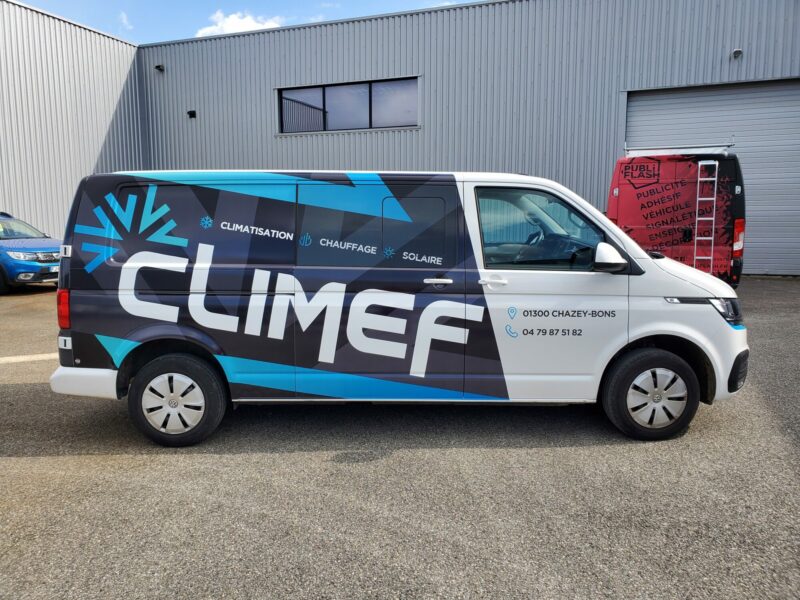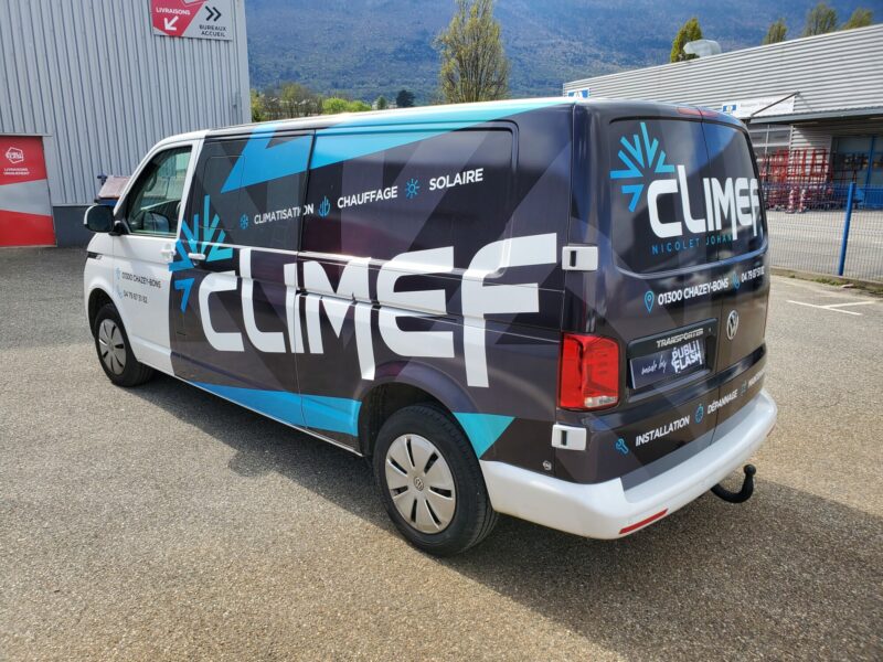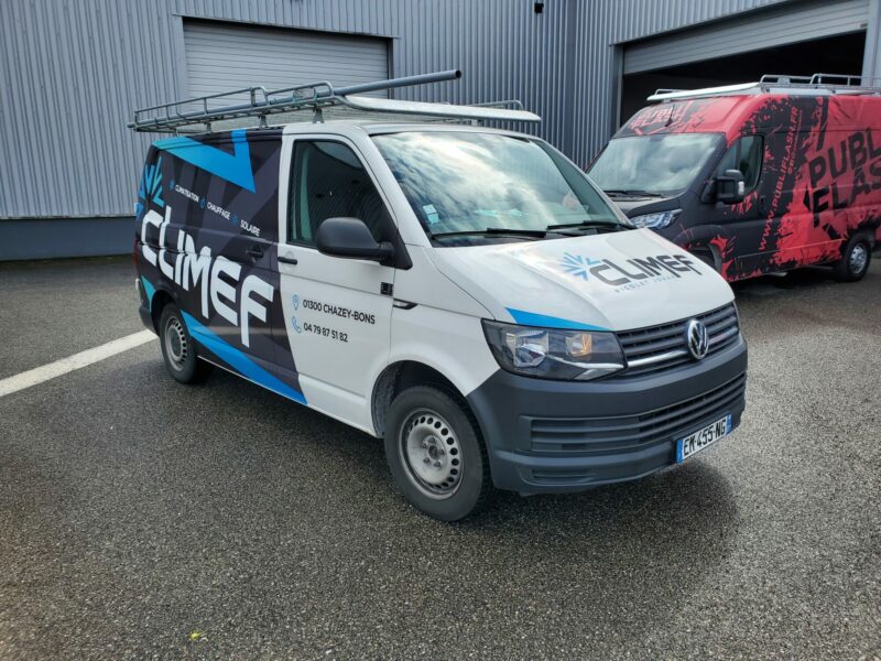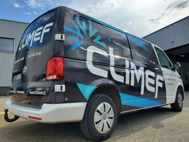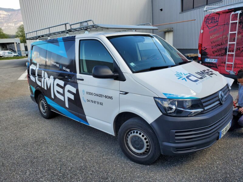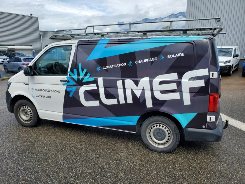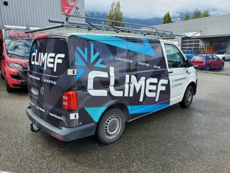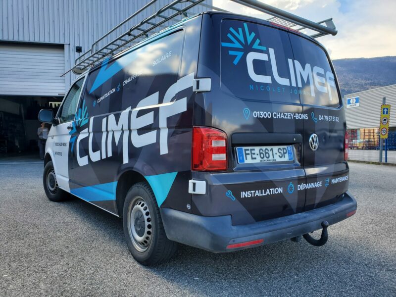Cette publicité itinérante attire l’attention et renforce l’image de Climef sur les routes de la Savoie et du Bugey.