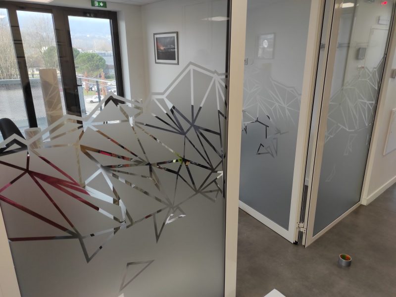 Adhésif effet dépoli, collage intérieur pour éviter le vis à vis.