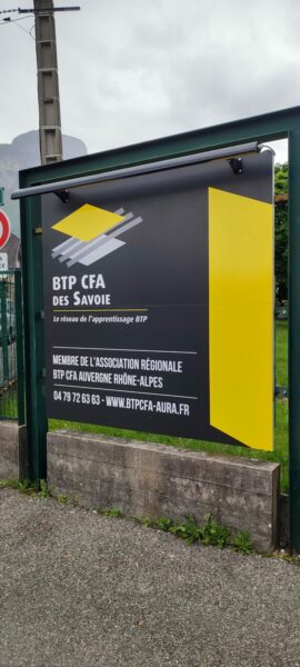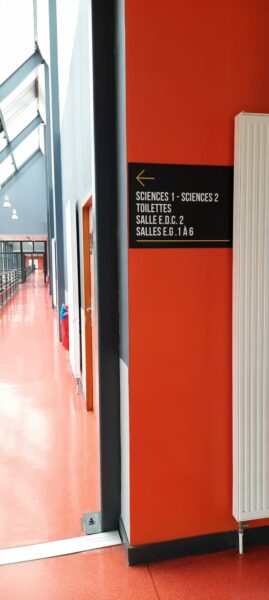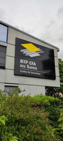 Nous avons collaboré avec Effet Boomerang sur un projet global de signalétique pour le BTP CFA des Savoie. L’objectif : créer un environnement plus accueillant et fonctionnel pour les élèves, à l’intérieur comme à l’extérieur.