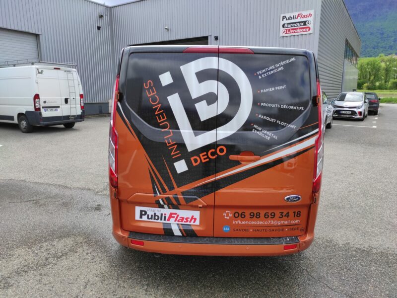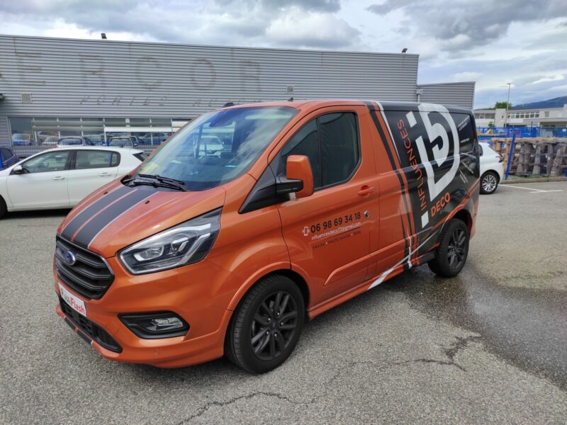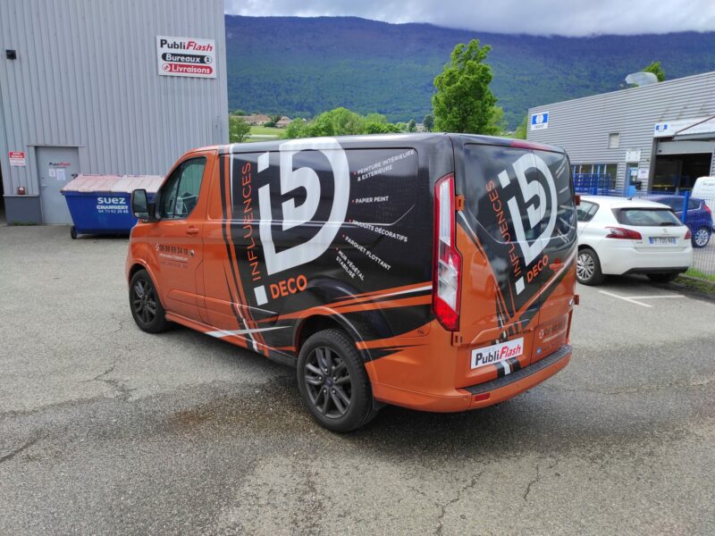 Un marquage en covering partiel découpé avec une trame de fond effet croco pour cette entreprise de rénovation.
