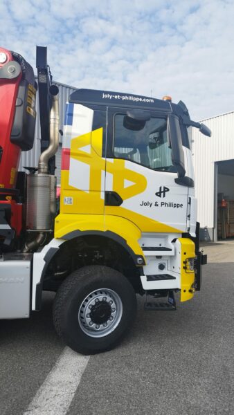 Pour la société savoyarde Joly et Philippe, nous avons réalisé un semi-covering sur leur nouveau véhicule de transport.