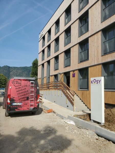 Le Kosy, face au lac d’Aix-les-Bains, nous a confié la réalisation et la pose de sa nouvelle enseigne lumineuse grand format.