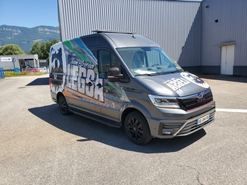 Pour accompagner l’aménagement intérieur haut de gamme de ce fourgon nous avons réalisé un covering percutant et féroce.