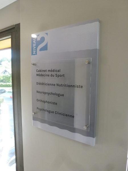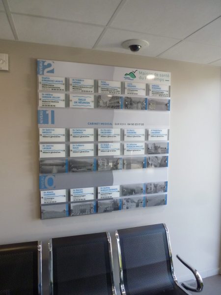 Plaques de praticiens personnalisées et interchangeables sur le panneau du hall d’entrée