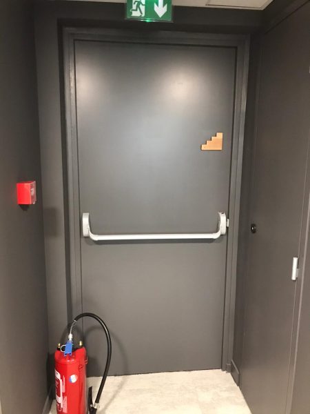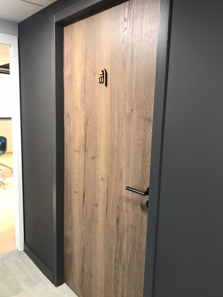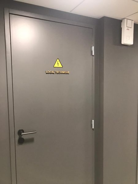 Signalétique intérieure sur les portes et les murs de ces bureaux.