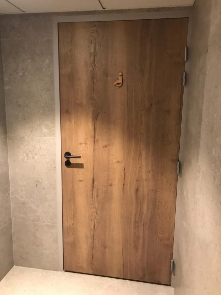 Nous avons utilisé du bois et du dibond effet miroir pour donner un aspect cosy et classe.