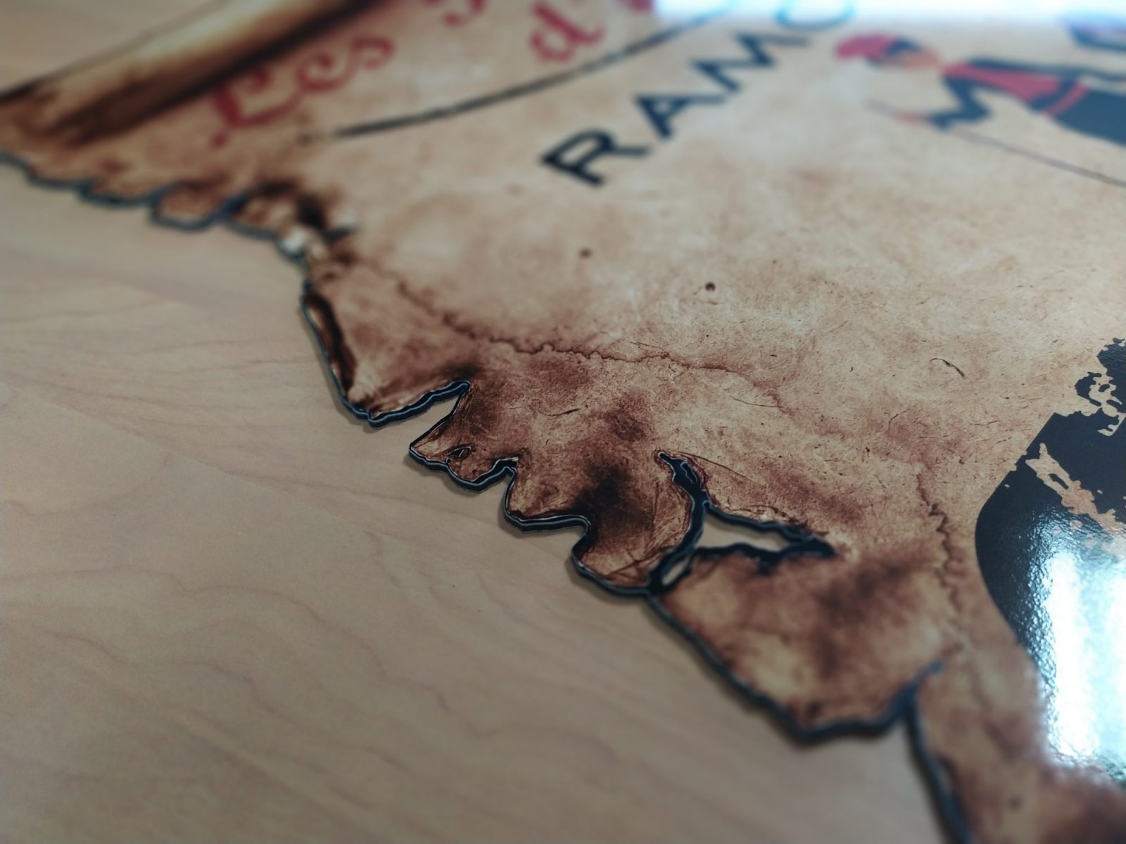 Hormis le sticker de sol plutôt classique, les nouveautés sont des parois faites dans un matériaux très léger et rigide, afin de séparer les tables et différents espaces. elles sont ajourées d’une “fenêtre” en plexi pour garder un maximum de visibilité et de lumière, et décorées dans l’esprit du restaurant. Plusieurs largeurs et hauteurs pour les panneaux fixes et une déclinaison sous forme de paravent modulable (nombre de volets, ajourés ou non…)