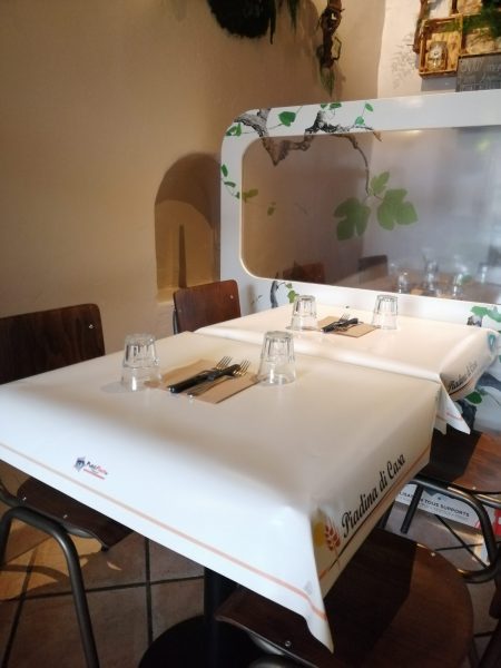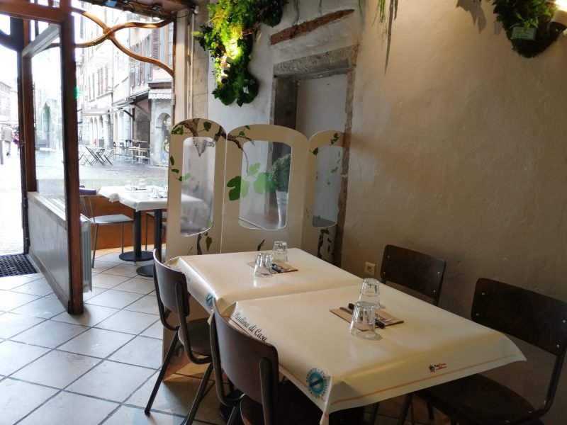 Pour ce restaurant du centre ville de Chambéry, nous avons créer différents éléments de protection anti covid.