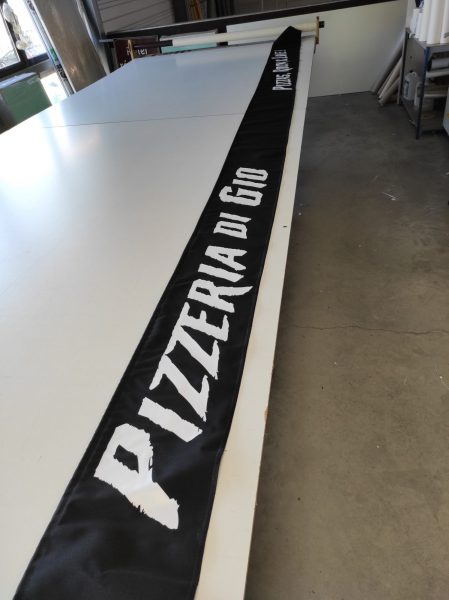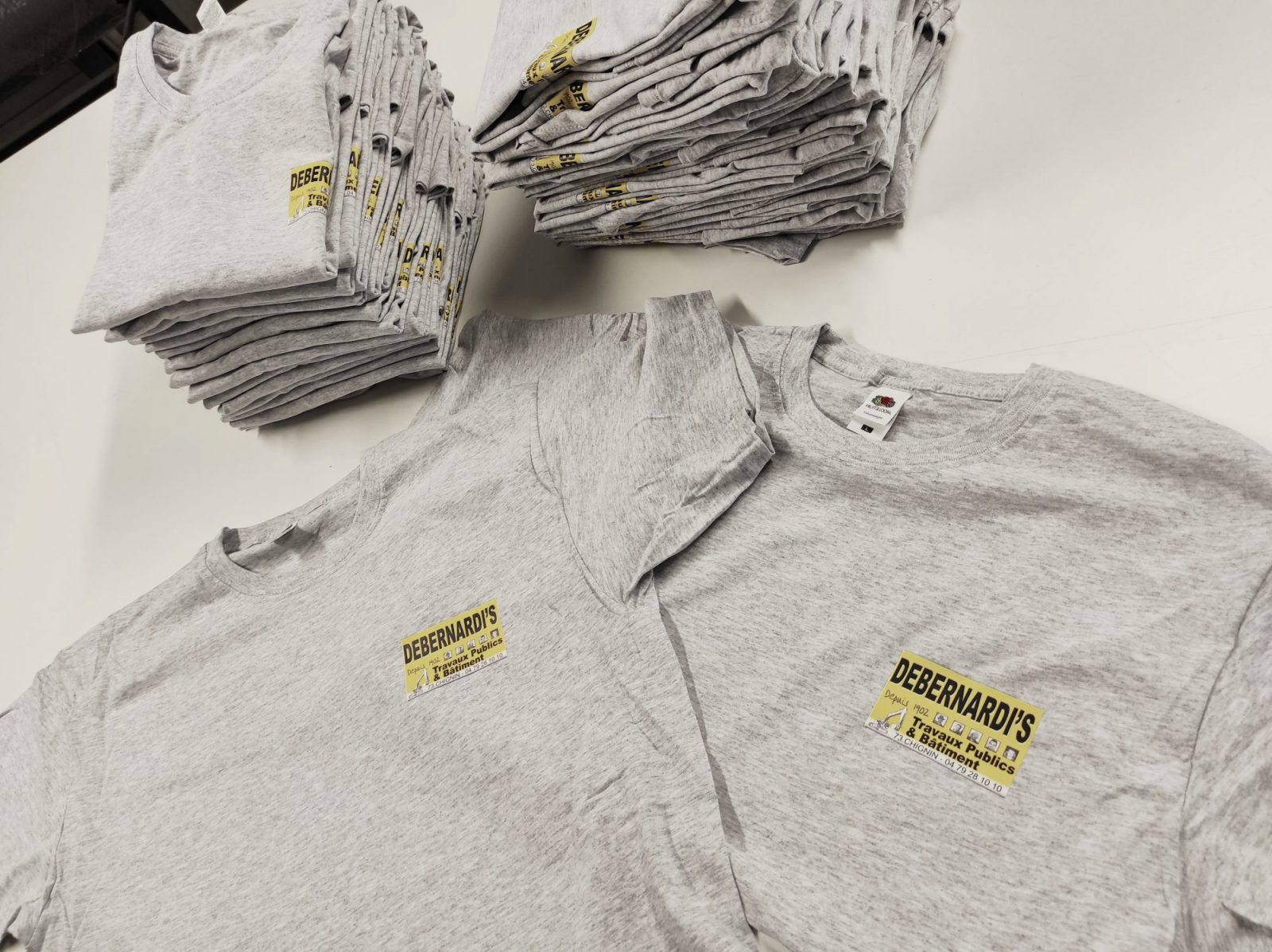 Marquage de T-shirts pour le staff de la pizzeria et du lambrequin extérieur