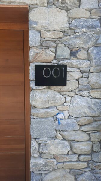 Ensuite, des panneaux de signalétique en aluminium ont été fabriqués pour guider élégamment les résidents et visiteurs.