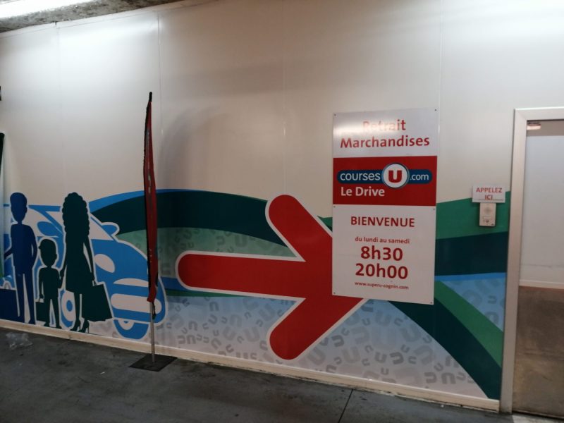 Pas loin de 40m de long de ce mur a été decroé pour orienter les clients du Drive.