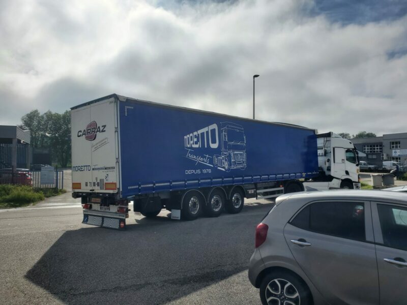 Pour notre client Transport Moretto, nous avons réalisé une peinture au pochoir sur les deux côtés latéraux d’une remorque poids lourd.