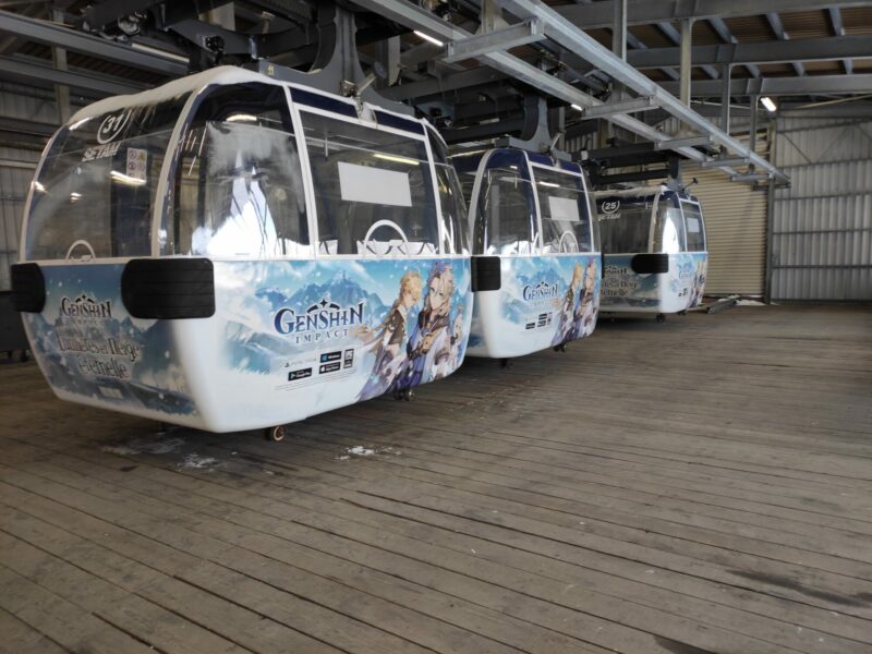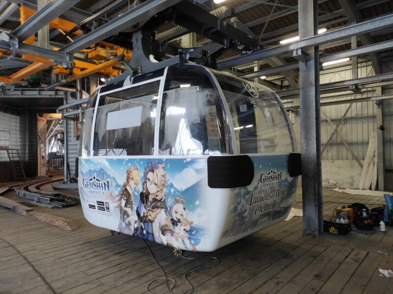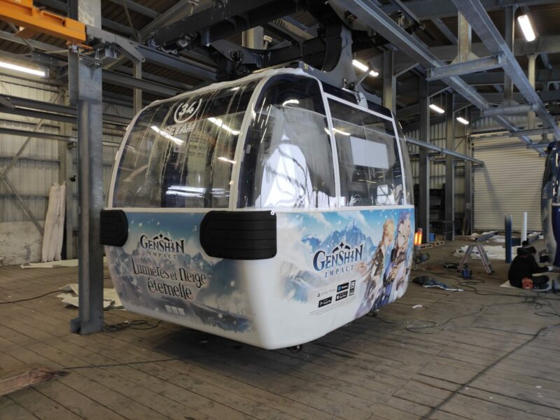 L’office de tourisme de Val Thorens nous a une nouvelle fois sollicité pour le covering de 5 total covering sur les cabines du Funitel pour la sortie du nouveau jeu évènement GENSHIN IMPACT.