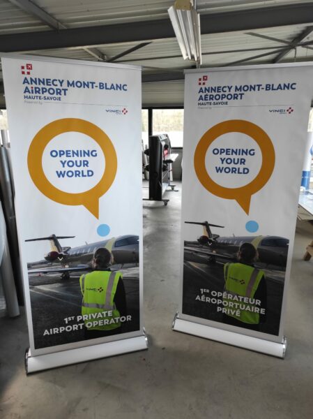 Réalisation de roll’up largeur 85cm pour les aéroport VINCI de Chambéry et Annecy dans le cadre de leur campagne anti-COVID