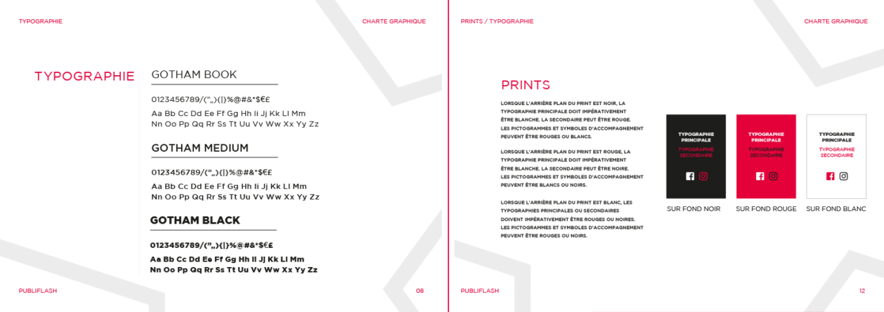 Nous avons également affirmé la typographie, tout en l’inscrivant dans cette ligne directrice. Elle se base sur Gotham que ce soit pour le logotype ou pour les textes d’accompagnement.